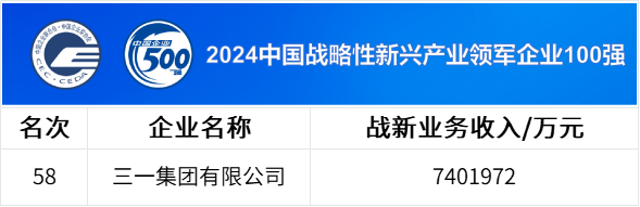 在 “2024中國戰(zhàn)略性新興產(chǎn)業(yè)領(lǐng)軍企業(yè)100強(qiáng)”,三一集團(tuán)位列第58名。在推動產(chǎn)品電動化的同時,三一集團(tuán)將新能源產(chǎn)業(yè)作為實現(xiàn)事業(yè)第二增長曲線的主攻方向,深度布局風(fēng)能、光伏、氫能、鋰電、儲能等多個領(lǐng)域,取得積極進(jìn)展。